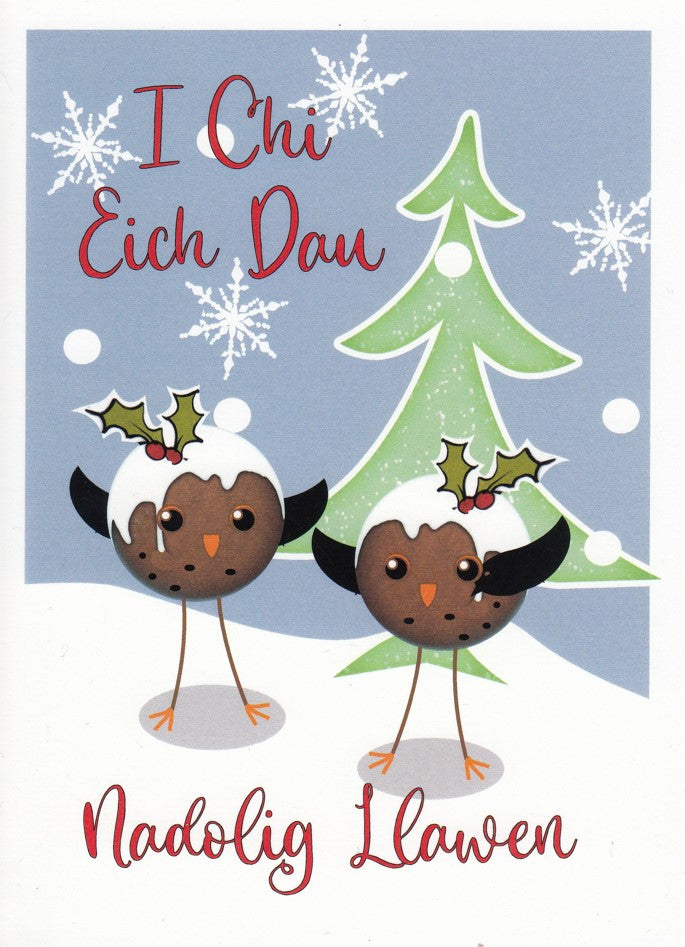 Message inside card: Nadolig Llawen a Blwyddyn Newydd Dda, translates as 'Merry Christmas and a Happy New Year'.