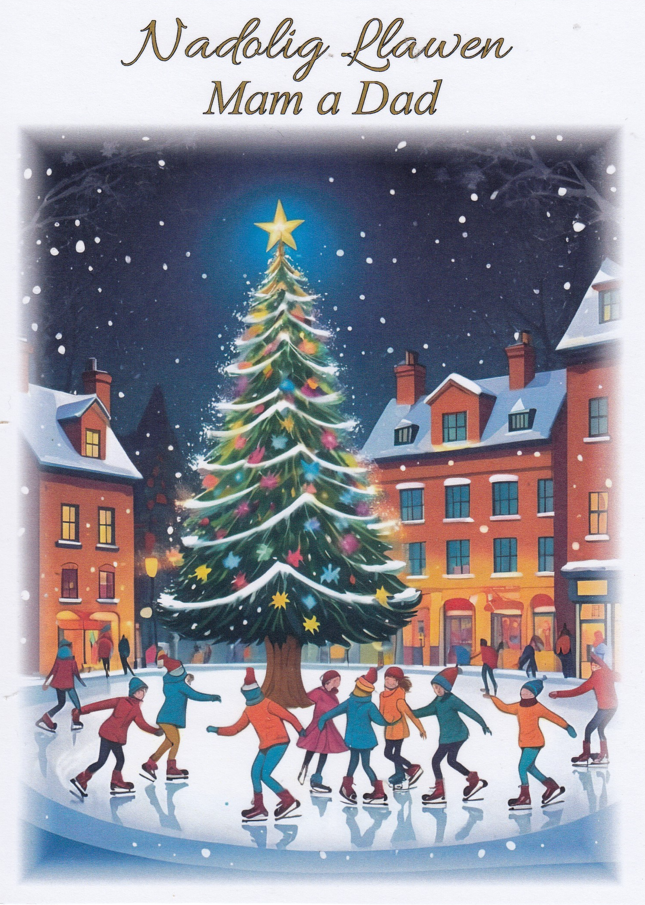 Cerdyn hyfryd ar gyfer anfon eich cyfarchion Nadolig at eich Mam a Dad.