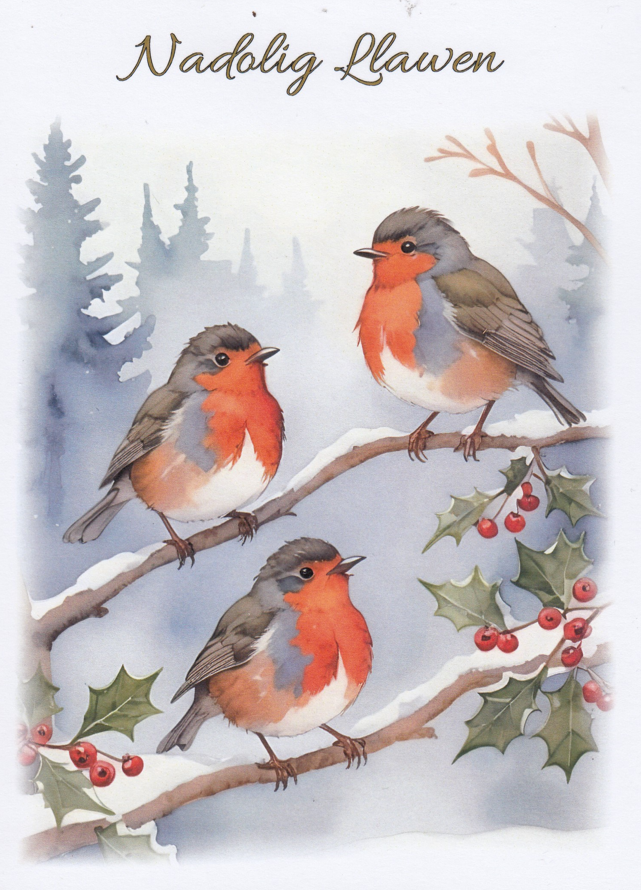 Message inside card: Nadolig Llawen a Blwyddyn Newydd Dda, translates as 'Merry Christmas and a Happy New Year'.