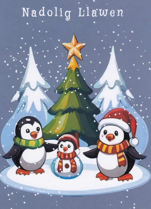 Message inside card: Nadolig Llawen a Blwyddyn Newydd Dda, translates as 'Merry Christmas and a Happy New Year'.