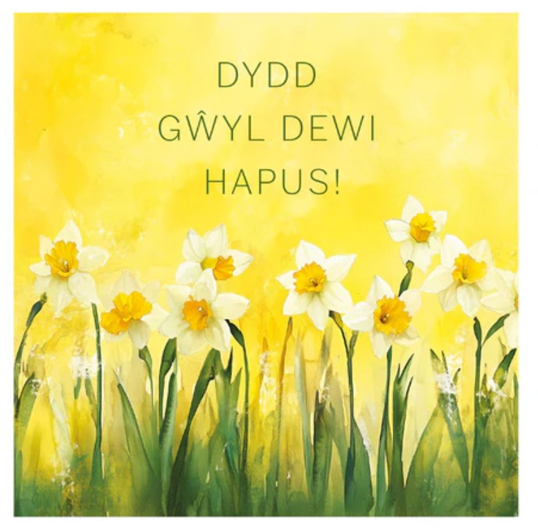 A lovely Welsh card featuring gorgeous daffodils for wishing someone a 'Happy St David's Day'.