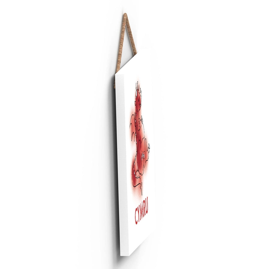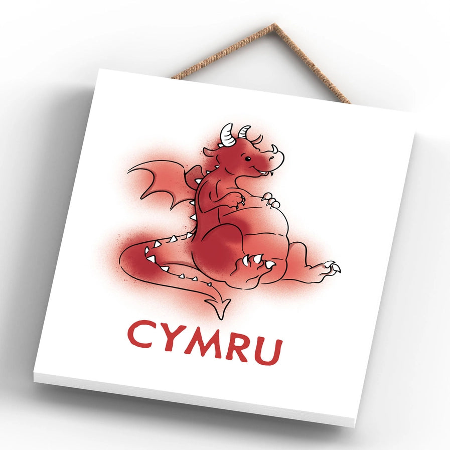 Wooden hanging plaque featuring a cute red dragon and the word 'Cymru' which is Welsh for 'Wales' - designed to be the gift that puts a big smile on the recipients face!