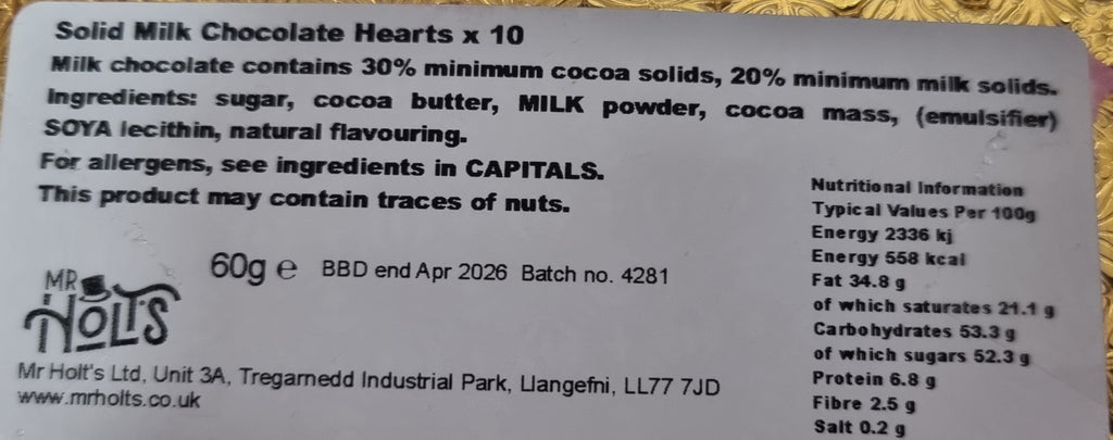 10 High Quality Solid Milk Chocolate Hearts packaged in a gorgeous heart shaped box featuring the words 'Caru Ti' which translates as 'Love You' in Welsh.