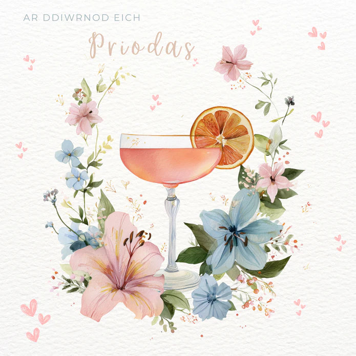 Welsh card for sending the special couple a lovely message on their wedding day.