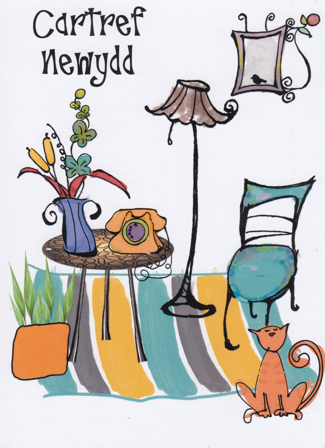 Anfonwch eich dymuniadau gorau a neges o bob lwc yn y cerdyn cartref newydd yma.