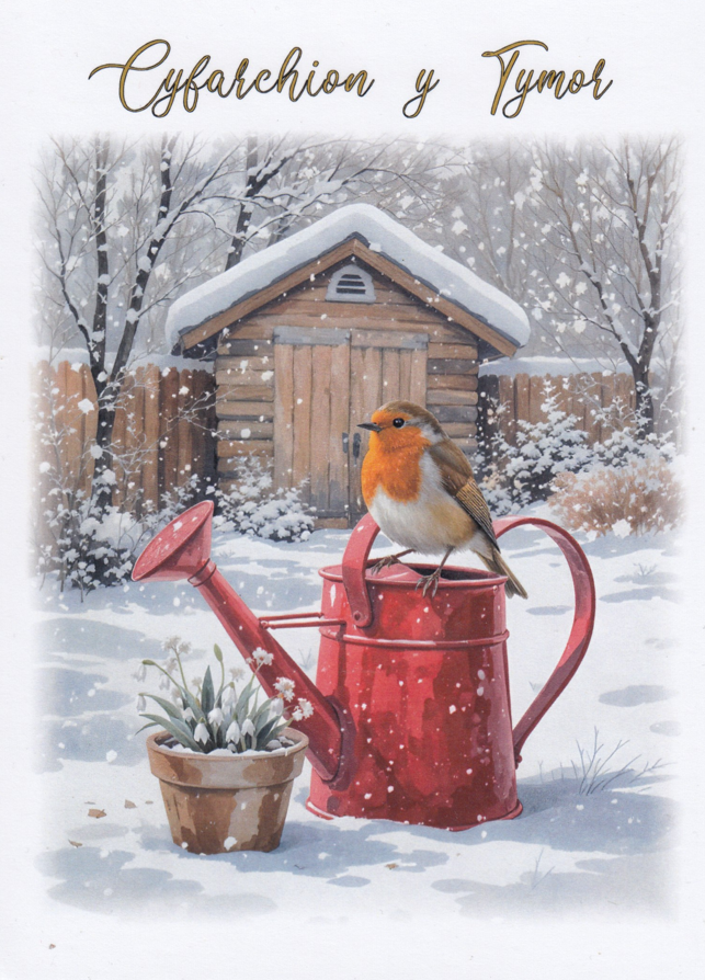 Message inside card: 'Cyfarchion y Tymor', translates as 'Season's Greetings'.