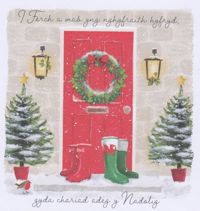 Send your Daughter and Son-in-law your special Christmas message in this lovely Welsh card.