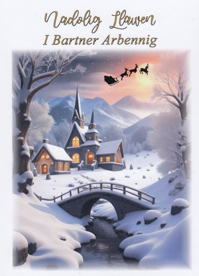 Message inside card – ‘Nadolig Llawen a Blwyddyn Newydd Dda'; translates as ‘Merry Christmas and a Happy New Year’.