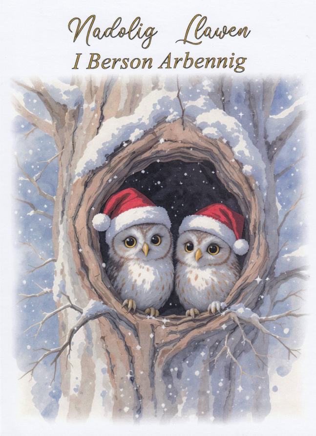 Message inside card – ‘Nadolig Llawen a Blwyddyn Newydd Dda'; translates as ‘Merry Christmas and a Happy New Year’.