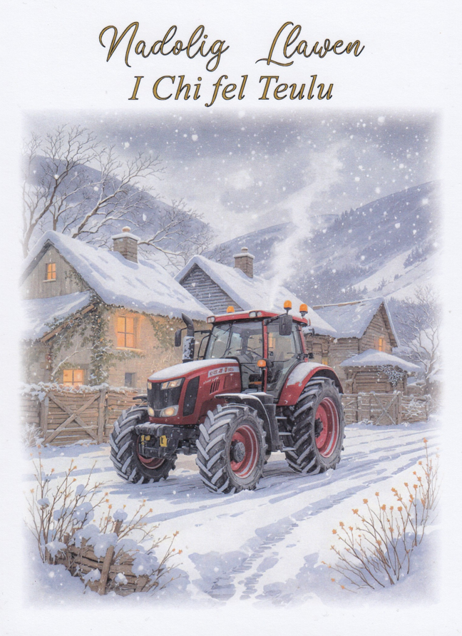 Cerdyn hyfryd ar gyfer anfon eich cyfarchion Nadolig at deulu cyfan.