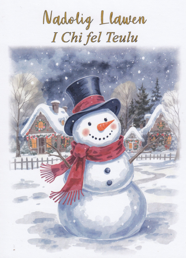 Message inside card: Nadolig Llawen a Blwyddyn Newydd Dda, translates as 'Merry Christmas and a Happy New Year'.