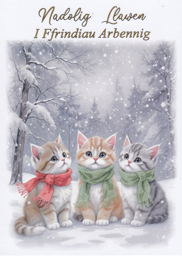 Cerdyn hyfryd ar gyfer anfon eich cyfarchion Nadoligaidd at eich ffrindiau arbennig eleni.