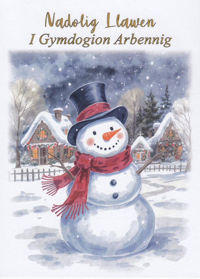 Message inside card: Nadolig Llawen a Blwyddyn Newydd Dda, translates as 'Merry Christmas and a Happy New Year'.
