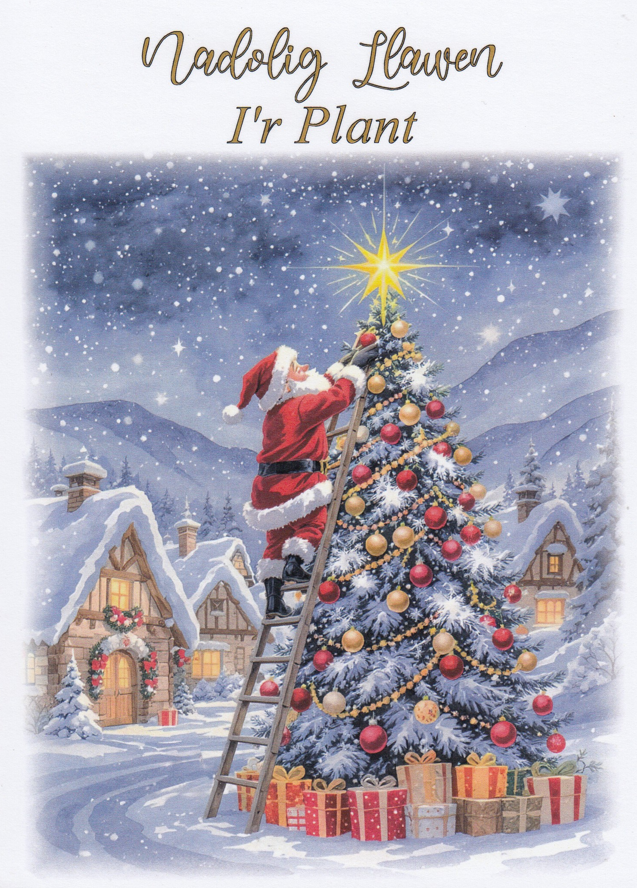 Message inside card: Nadolig Llawen a Blwyddyn Newydd Dda, translates as 'Merry Christmas and a Happy New Year'.