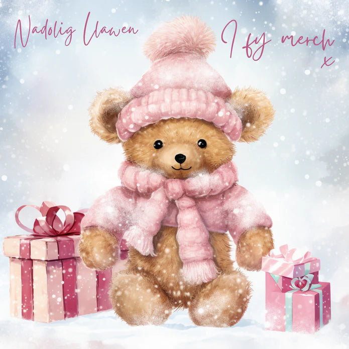 Anfonwch eich neges Nadoligaidd at eich Merch yn y cerdyn ciwt yma!