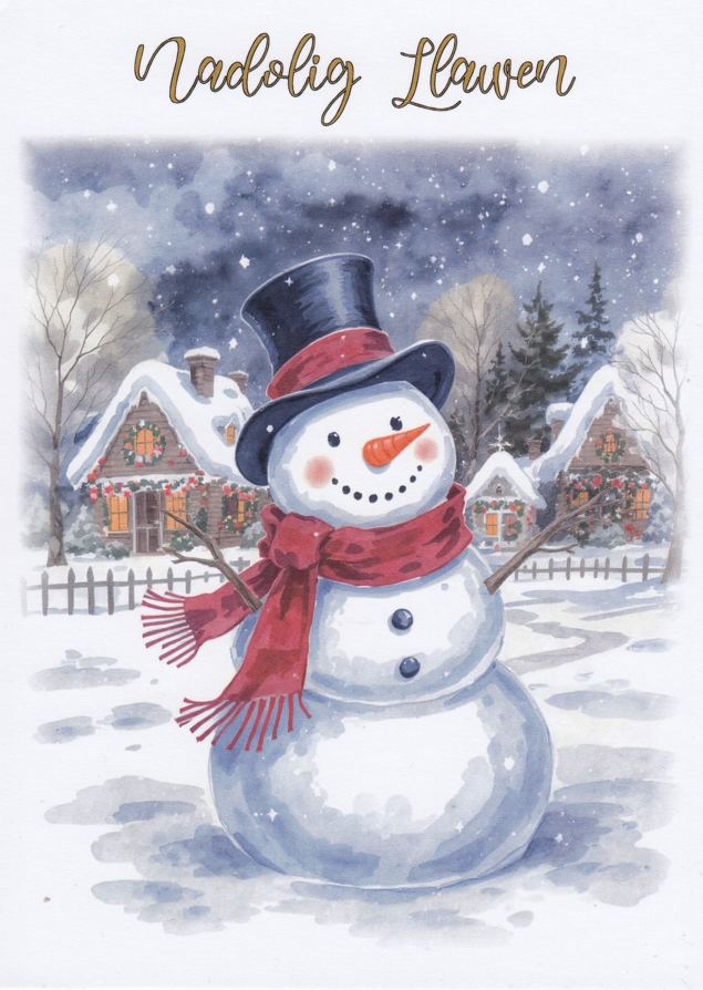 Cerdyn hyfryd ar gyfer anfon eich cyfarchion Nadolig eleni.