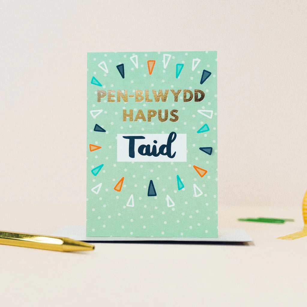 Cerdyn perffaith ar gyfer anfon eich dymuniadau gorau ar ben-blwydd eich Taid. Mae'r cerdyn hyfryd yma wedi ei orffen gyda ffoil lliw aur.