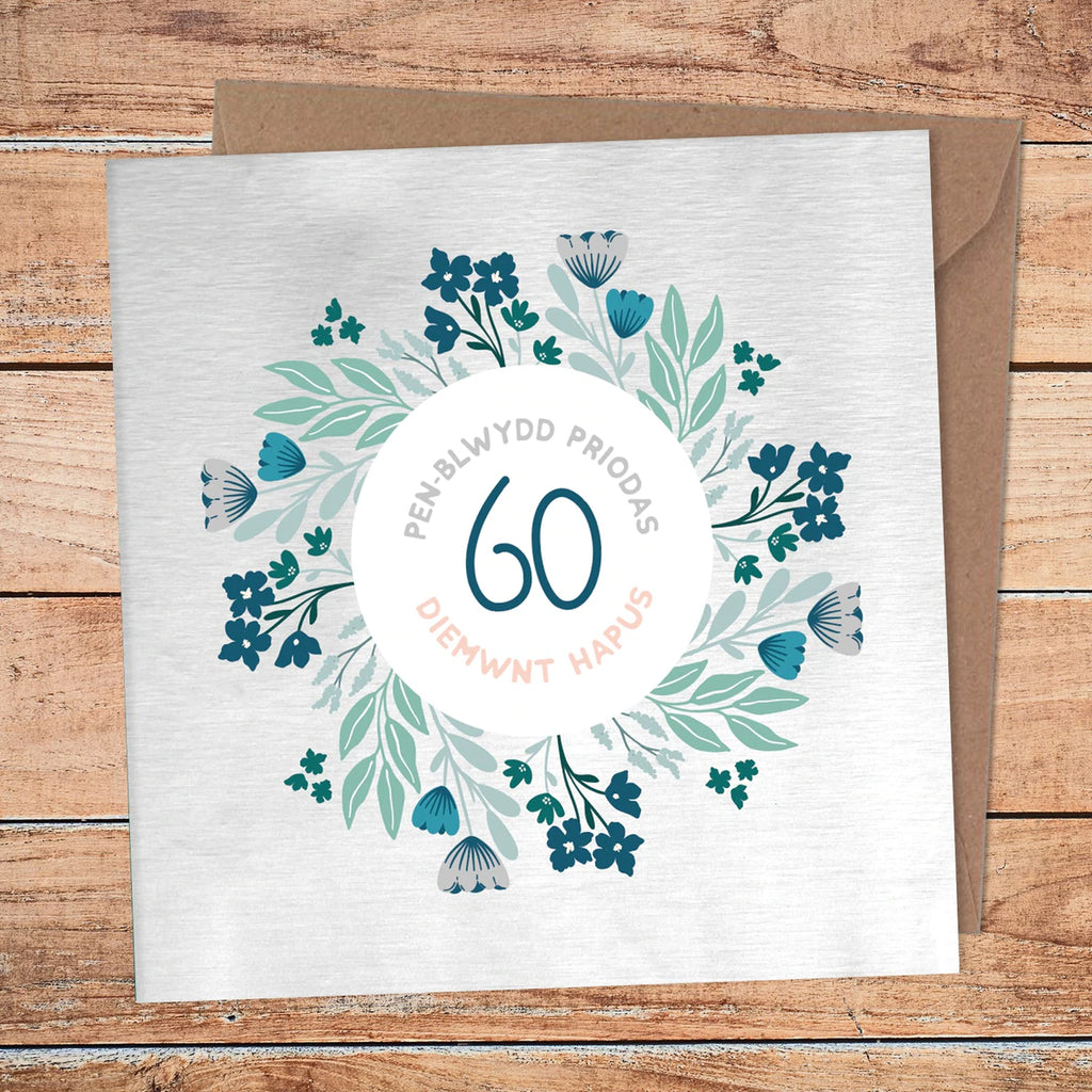 Cerdyn hyfryd ar gyfer y cwpwl arbennig sydd yn dathlu 60 mlynedd o briodas - priodas ddiemwnt.