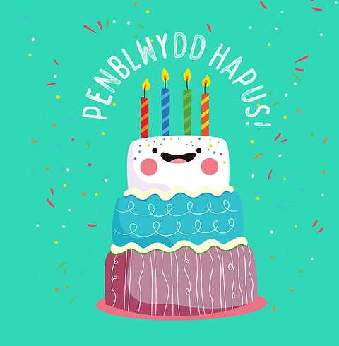 Fab Welsh card featuring a tasty cake and the words 'Penblwydd Hapus, (which translates as 'Happy Birthday' in Welsh).