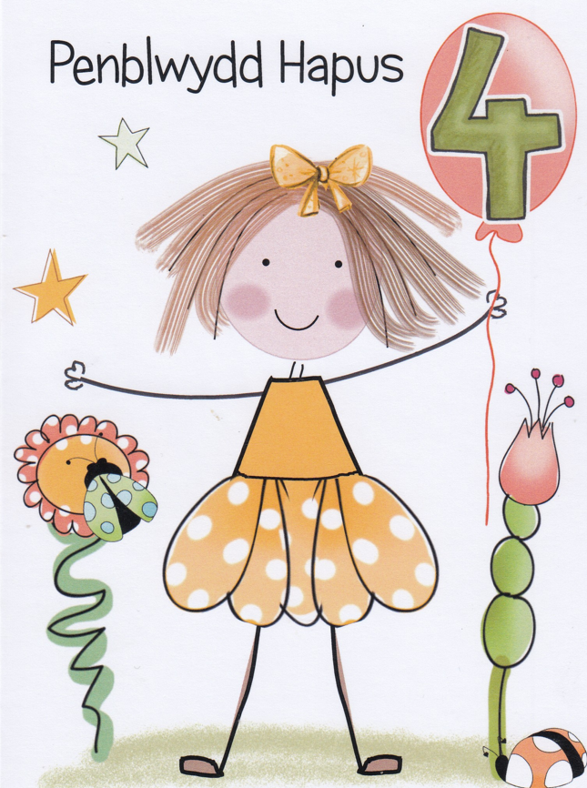 A lovely Welsh 4 year old Birthday card.