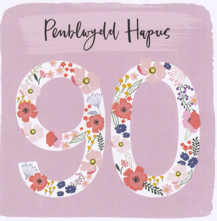 Message on front of card translates as 'Happy Birthday 90'.