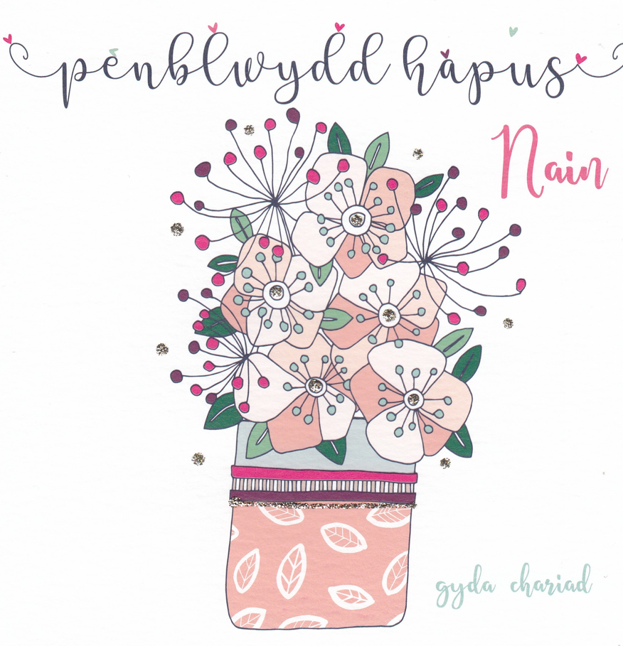 Lovely Welsh card for sending your Grandma a special birthday wish. Hand-finished with glitter.