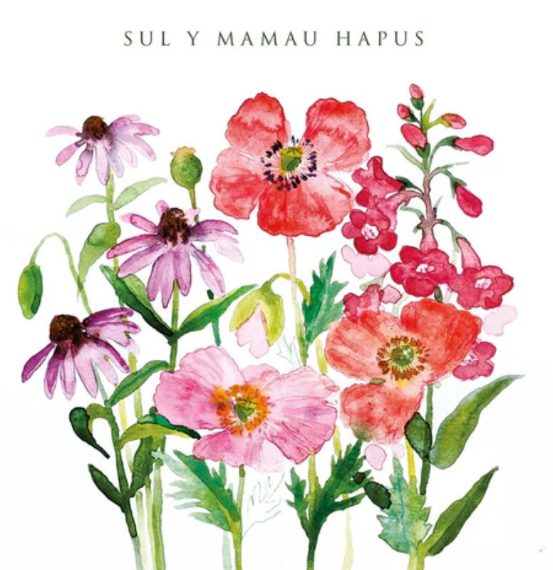A lovely Welsh card featuring a gorgeous floral design for wishing someone a 'Happy Mother's Day'.