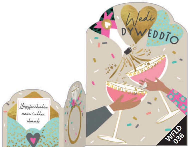 Lovely contemporary multi-fold Welsh 7" x 5" card for a special couple on their engagement.